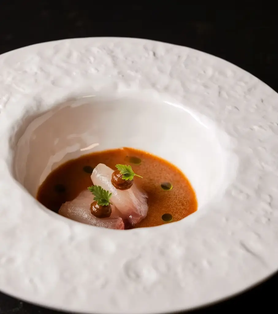Queremos recuperar la libertad de elegir a la carta. Por ello, le ofrecemos un menú compuesto por un pase de aperitivos, postre y bocado dulce, y tu elección de 3 pases salados + 1 principal (85€) o 4 pases salados + 1 principal (95€).